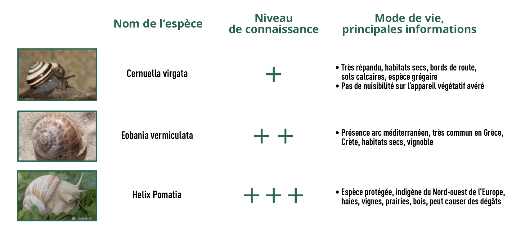 Les différentes espèces d'escargots