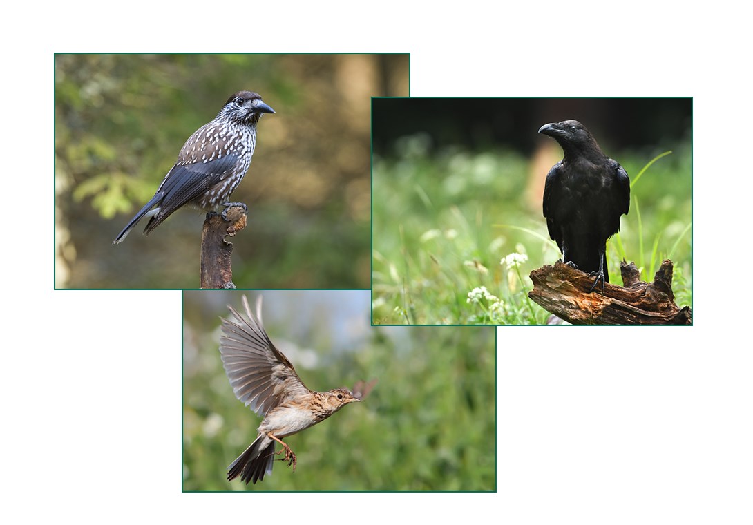 - 686 observations, environ 2000 situations différentes concernant principalement les alouettes, corbeaux, corneilles, étourneaux, perdrix grises et pigeons ramiers.