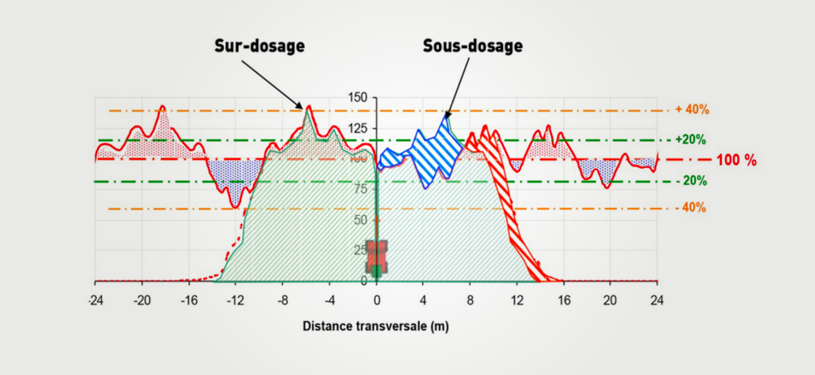 Par conception, les épandeurs "simples" présentent des répartitions très hétérogènes.