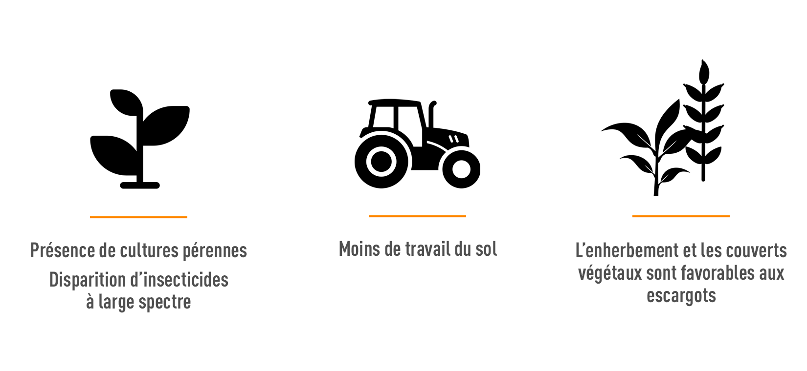 Les surfaces couvertes et l’absence de travail du sol favorisent le développement des escargots